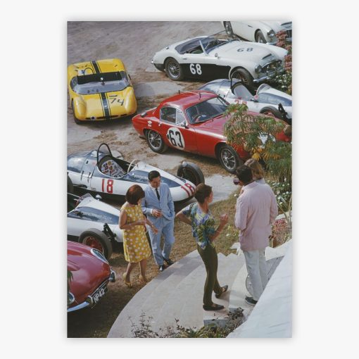 Available in photo lustre or matte finish, professionally framed in black, white, or natural wood. This Slim Aarons photograph brings the excitement of 1963 Nassau into contemporary spaces where vintage racing heritage and tropical style enhance sophisticated interiors. Make this remarkable moment of Bahamian motorsport history yours today.