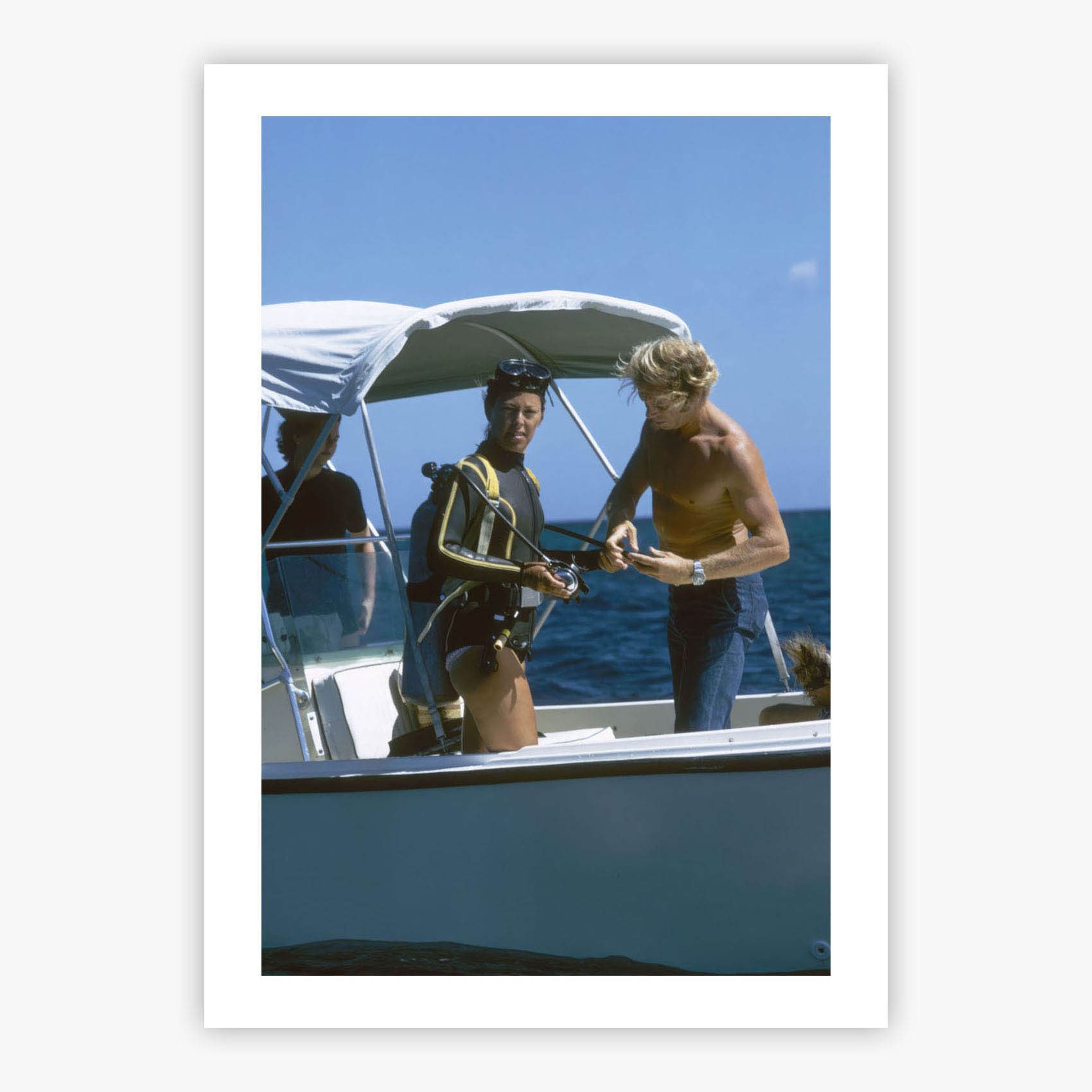 Slim Aarons masterfully encapsulated the zeitgeist of his time, and this print transports you to an era of elegant lifestyle and sophisticated adventure. Available in photo lustre or matte finish, professionally framed in black, white, or natural wood, this photograph doesn't just decorate but brings the spirit of Caribbean luxury into your daily life, making every glance a journey to that sparkling moment off Lyford Cay.