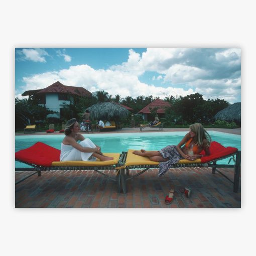 Cisneros And Montagu captures a candid moment between Minnie Montagu and Patricia Cisneros in the lavish setting of Casa de Campo, Dominican Republic, where Slim Aarons immortalized a serene afternoon by the pool in April 1977. Step into a bygone era where elegance meets casual charm, the epitome of leisure and sophistication. Subtle in its storytelling yet rich in detail, this photograph effortlessly transports you to a world where the sun always shines and the pool is forever inviting, a conversation starter that brings a hint of glamour and nostalgia to any wall.