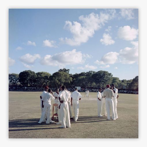 Cricket In Antigua captures a golden moment during a 1960 cricket match between the Leeward Islands and the MCC in Antigua, West Indies, where Slim Aarons immortalized the timeless spirit of Caribbean sporting culture. The scene reveals players in crisp white uniforms against lush green grounds, with palm trees swaying in the tropical breeze and spectators gathered beneath shaded pavilions. With his signature ability to frame life's most enchanting moments, Aarons created a window into an era when cricket represented more than sport, embodying the relaxed elegance and social grace of island life at its finest.