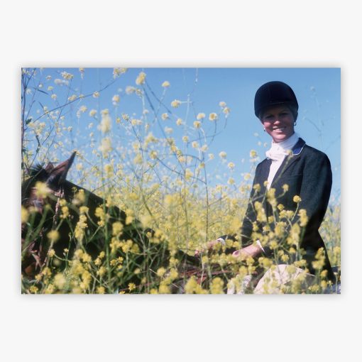 Holly Masek and Cocoa immortalizes Cynthia 'Holly' Hollister Masek and her horse amid a luscious field of blooming mustard in 1976. Slim Aarons, master of capturing effortless elegance, pays homage to Masek's ancestral roots, deeply intertwined with the early history of Santa Barbara, California. This visual narrative seamlessly infuses your living space with serenity and nostalgia, where golden fields meet the timeless bond between woman and horse.
