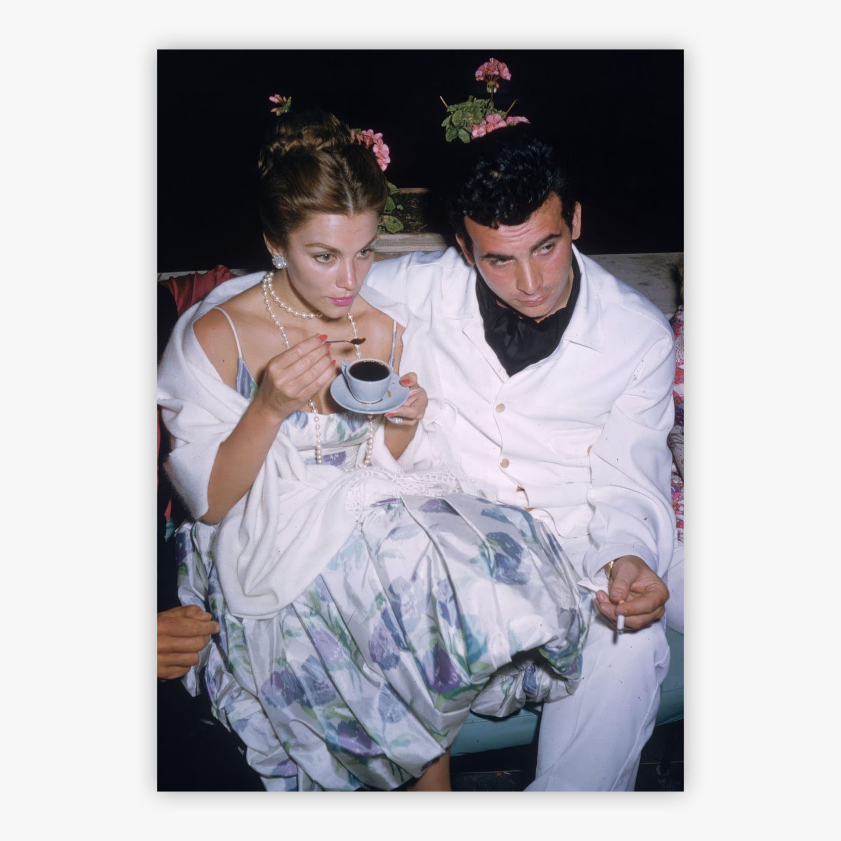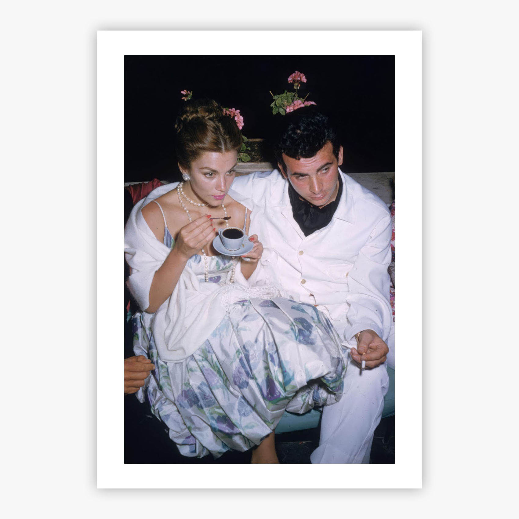Evening Coffee captures actress Linda Christian and a companion sharing an intimate moment over coffee on the sun-drenched island of Capri, where golden light bathes the scene in warmth and Mediterranean charm. Slim Aarons photographed this quiet exchange with his signature ability to reveal the grace found in everyday rituals, where simple pleasures become something extraordinary. The relaxed elegance of the subjects, the casual sophistication of their setting, and the timeless appeal of connection over coffee create a scene that speaks to life's most genuine moments of companionship and ease.