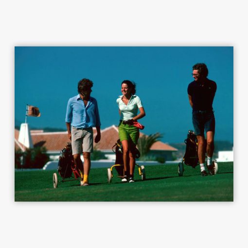 Golfing Beauty captures Veronica de Mareuil enjoying a sun-kissed day on the lush fairways of Sotogrande, Spain, in August 1975, accompanied by two friends in this masterful creation by Slim Aarons. The photographer has encapsulated a scene that radiates both glamour and tranquility, a balance rarely achieved but always aspired to. The golden Spanish sunlight illuminates the verdant landscape, while the casual elegance of the moment speaks to an era when leisure was an art form, and style was effortless.