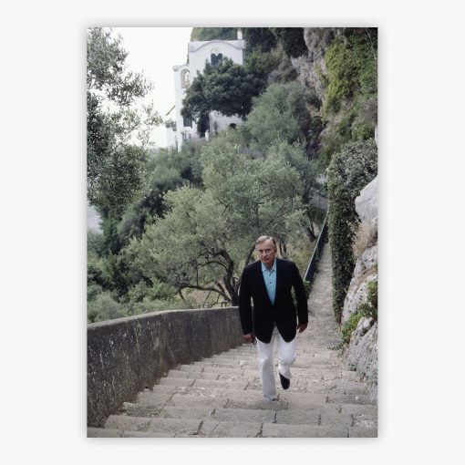 Step into the world of literary legends and Italian allure with our stunning photograph, Gore Vidal: A Stroll Through La Rondinaia. Captured by the iconic Slim Aarons in August 1984, this visual masterpiece immortalizes the prolific American writer Gore Vidal as he ascends the quaint hillside steps of his villa, La Rondinaia, in the enchanting town of Ravello on Italy's Amalfi Coast. The genius of Slim Aarons is evident in every detail of this evocative print.