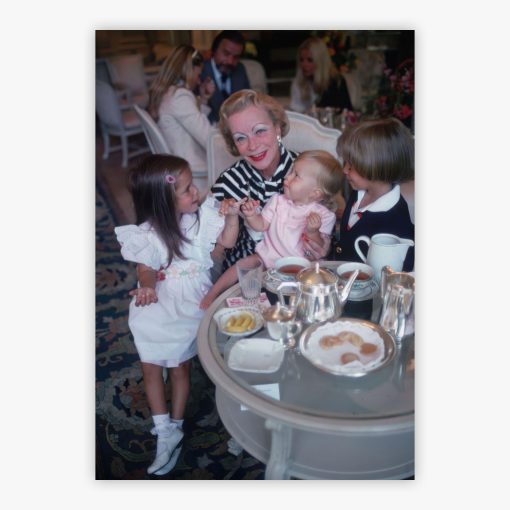 Granny Berghaus captures a moment of timeless elegance in September 1978, as Slim Aarons photographed afternoon tea in the serene Baden-Baden setting. Mrs. Lillyclaire Berghaus shares this intimate moment with Lillyclaire Odette Saran, baby Christian Lillyclaire Berghaus, and Edmond Bernhard Saran, where generational legacy and familial bonds unfold naturally. The neutral tones and composed arrangement reveal the quiet sophistication of European high society, while the relaxed poses and gentle afternoon light create an atmosphere of warmth and grace that transcends the decades.
