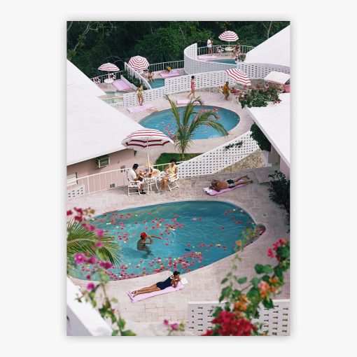 When Slim Aarons photographed this multilevel oasis during Acapulco’s golden age, he captured more than architecture meeting landscape. This gallery-standard print establishes a sophisticated focal point that transforms blank walls into windows overlooking perpetual summer. The geometric arrangement of pools and parasols creates visual rhythm that draws viewers through the composition, while warm sunshine radiates from every corner of the frame. Las Brisas Hotel brings mid-century glamour directly into contemporary interiors, its vibrant palette complementing both minimalist spaces and maximalist designs with equal aplomb.