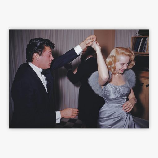 Step into the glamour of Hollywood's golden era with Let's Twirl, a captivating photograph that freezes a moment of pure elegance. Silver screen legends Tony Curtis and Janet Leigh sway in perfect harmony at James Mason's Beverly Hills soirée, their dance encapsulating the allure and sophistication that defined a generation. Captured by Slim Aarons, the master photographer who immortalized the beauty and luxury of the 20th-century elite, this print showcases his signature ability to document the effortless glamour of high society.