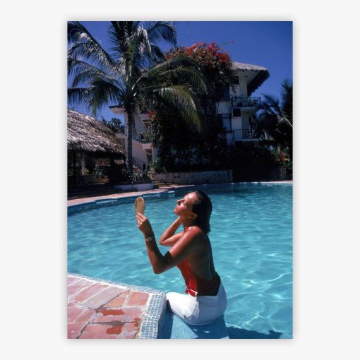 Make Up Check transports you to the sun-drenched poolsides of 1970s Puerto Vallarta, where Slim Aarons captured a woman in a moment of intimate self-assurance as she gazes into her compact mirror to perfect her appearance. The photograph embodies the unspoken allure of fleeting glamour, where golden light plays across the scene like a visual whisper that brings sophistication into your living space. This iconic image crystallizes the carefree elegance of an era when leisure carried an art form all its own, each detail from the poolside setting to her poised gesture revealing the mastery of a photographer who understood how luxury lives in the unguarded moment.