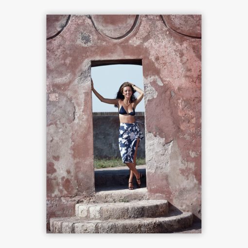 Marie-Louise Scio reveals a moment of Italian glamour captured by legendary photographer Slim Aarons in the sun-soaked haven of Porto Ercole, Tuscany, in 1991. This photograph encapsulates the effortless sophistication that defines the photographer's renowned style, where Marie-Louise Scio radiates an air of timeless elegance against the Mediterranean backdrop. The composition brings the Italian Riviera's unmistakable allure directly into your personal space, offering a glimpse into a world where natural beauty meets refined leisure.