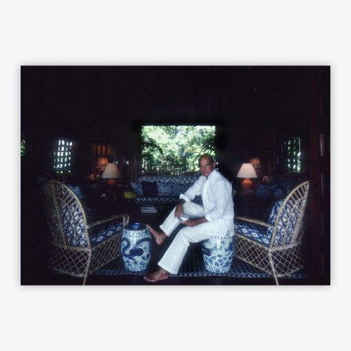Immerse yourself in an enchanting masterpiece, Oscar De La Renta, crafted by the visionary artist Slim Aarons. Transported to February 1985, witness the legendary fashion designer Oscar De La Renta in his serene Dominican sanctuary, the Casa de Madera, nestled within the opulent Casa de Campo resort.