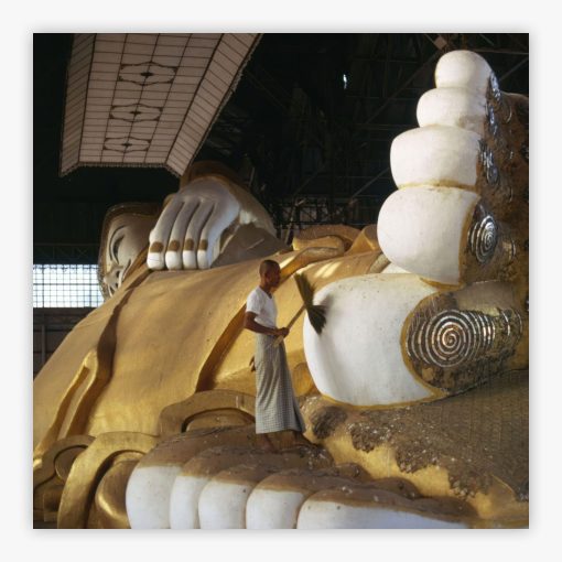 Imagine a realm where serenity intertwines with artistry, similar to the elegance found in Slim Aarons’ evocative work, Pedicure. This piece encapsulates a tranquil moment in 1971, depicting the feet of the reclining Buddha in Rangoon, Burma, being tenderly cared for. It is a scene that harmonizes the divine with the mundane, preserving a fleeting instant that resonates with both spirituality and humanity.