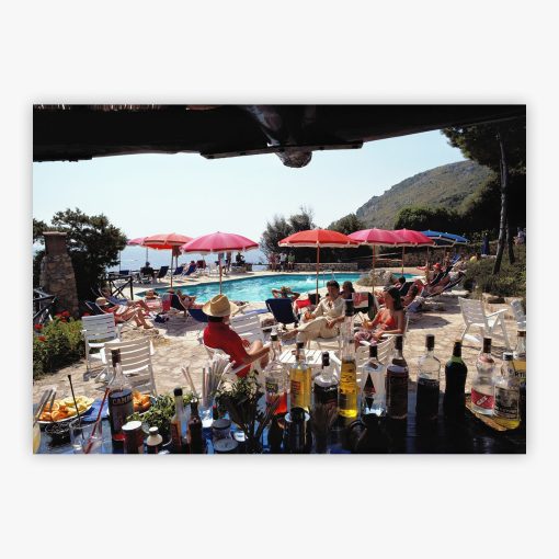 Immerse yourself in the ambiance of 1980s Italian elegance through Slim Aarons’ photography series Poolside Bar. This captivating visual journey showcases guests at Hotel Il Pellicano in Porto Ercole, Italy, enjoying the good life by the poolside bar. Taken in August 1980, this photograph captures the timeless essence of a bygone era where sophistication and leisure seamlessly intertwined.