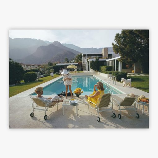 Envision this captivating masterpiece by Slim Aarons as the pièce de résistance in your living space, an arresting image that demands attention yet blends seamlessly with your interior decor. Whether you hang Poolside Poodle above your fireplace or in your personal study, this photograph infuses an air of breezy, effortless style that elevates the ambiance of any room. The blend of fashion, architecture, and a dash of canine charm make it an irresistible focal point, a conversation starter that mirrors your own exquisite taste.