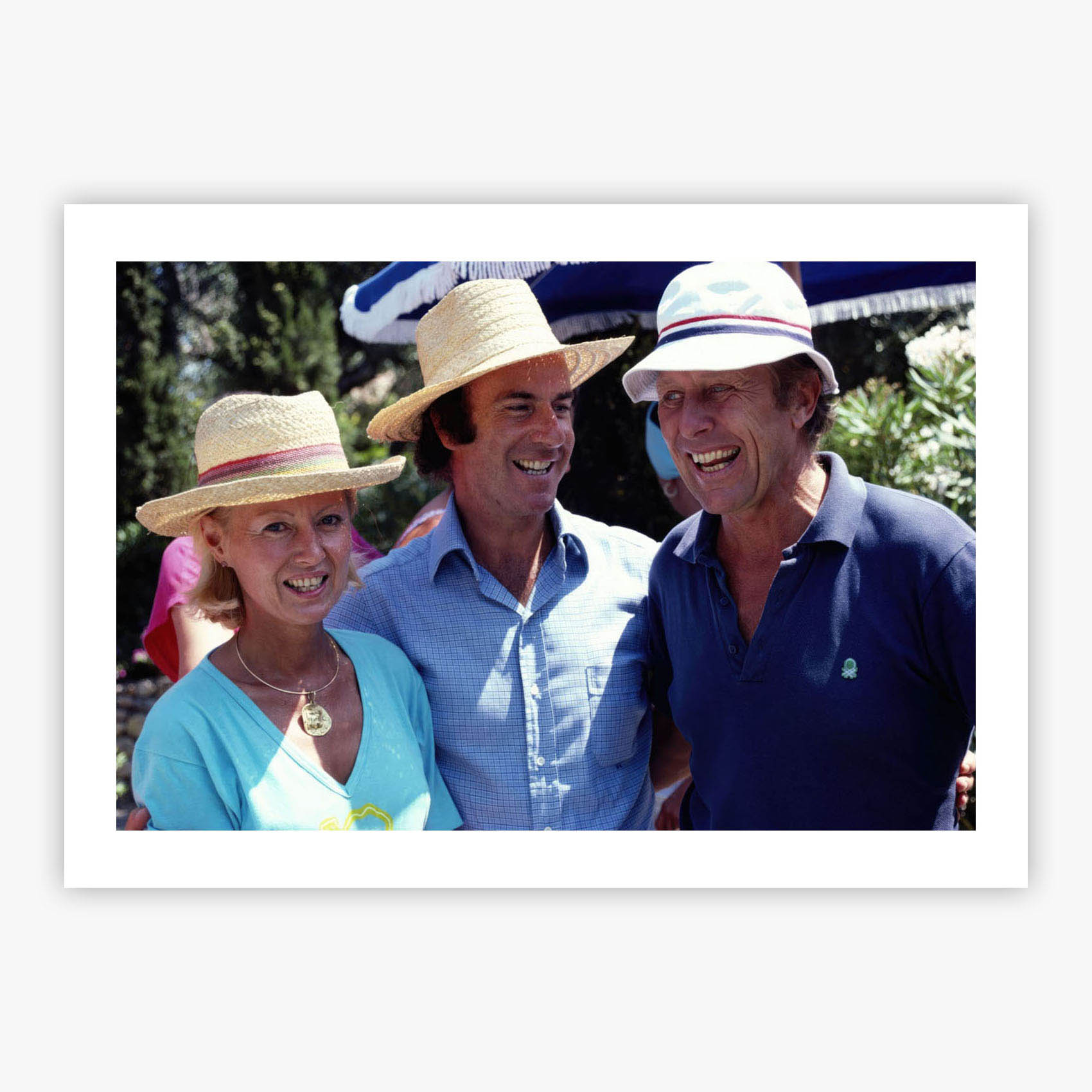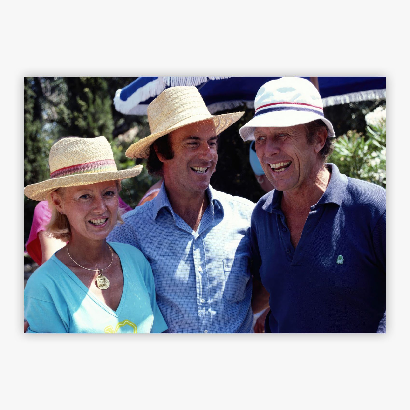 Porto Ercole Friends captures a sun-drenched afternoon in 1980s Tuscany, where Lady Judy Bathurst, Italian hotelier Roberto Scio, and John Vestey gather on a terrace overlooking the Mediterranean coastline. Slim Aarons immortalized this moment in Porto Ercole with his signature ability to frame the essence of leisurely sophistication. The warm Italian light bathes the scene, highlighting the relaxed elegance of three friends enjoying the simple pleasure of good company in an extraordinary setting, where the terra cotta tiles and coastal views create an atmosphere of timeless Mediterranean charm.