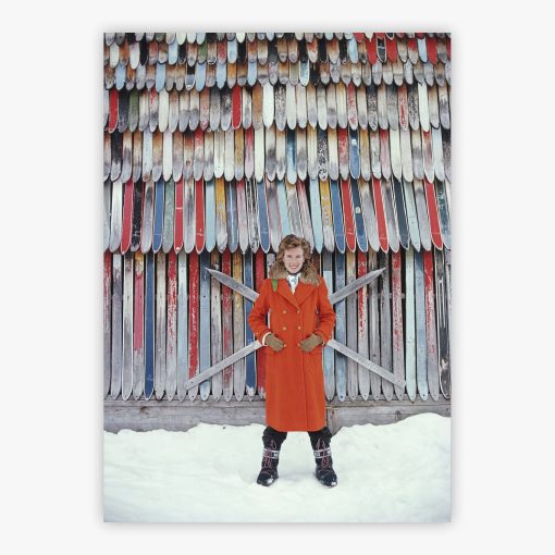 This photograph brings the romance of 1970s European winter society into your space, where every glance reveals new details in the arrangement of those vintage skis and the quiet confidence of its subject. Princess Ruspoli transforms an ordinary wall into a portal to an era when the mountains attracted not just athletes but an international circle of sophisticated travelers who understood that style and adventure could coexist beautifully. Your space gains the cosmopolitan sophistication of alpine resorts where Slim Aarons documented a world that valued both heritage and the thrill of the slopes, creating an atmosphere where guests discover the compelling story of a woman, a wall of history, and a master photographer's eye for scenes that transcend their moment.