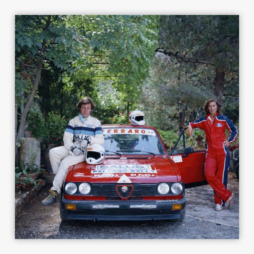Rallying Aristocracy captures Don Ferdinando Hardouin di Belmonte leaning confidently against his Alfa Romeo, dressed in crisp rally attire, with his elegant wife Maria Emanuela Delmisano at his side. Slim Aarons photographed this striking moment in 1984 on the sun-drenched roads of Sicily, Italy, where European glamour meets the thrill of motorsport. The scene radiates sophistication and adventure, from the gleaming Italian sports car to the couple's poised presence against the Mediterranean backdrop. This photograph immortalizes a world where aristocratic style and high-octane excitement intersect, creating a visual narrative that transcends time.
