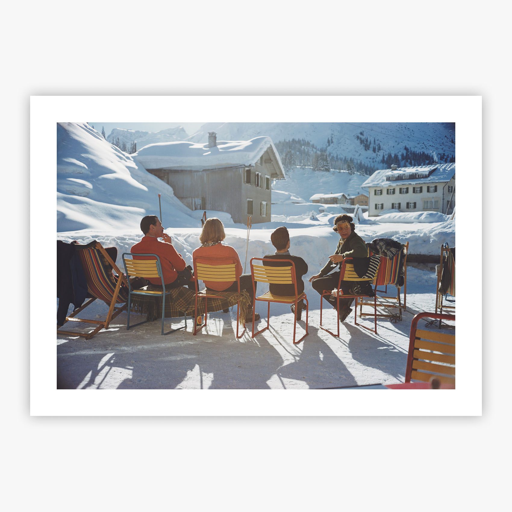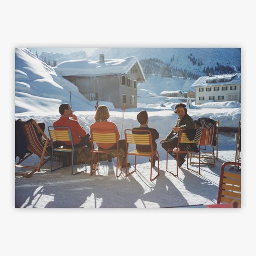 Immerse yourself in the glamour and ease of 1960s Austrian ski culture with Relaxing in Lech, a photograph that transports you straight to the sun-soaked terrace of the Gasthof Post hotel in Lech. This captivating Slim Aarons creation captures a convivial gathering of sun-seekers reveling in their Alpine paradise, embodying the photographer's signature style of documenting the leisurely lives of the beautiful people in their natural habitat of luxury and leisure.