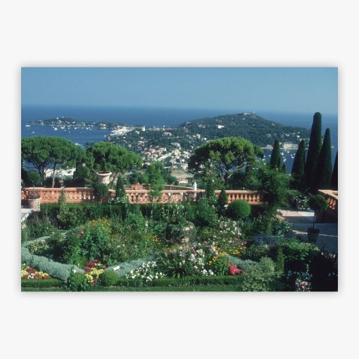 Safra Estate by Slim Aarons, captured in July 1991, offers an intimate glimpse into La Leopolda, the opulent French Riviera estate of banker Edmond J. Safra and his wife Lily. Located in the picturesque Villefranche-sur-Mer, this photograph unfolds from the vantage point of the lush Mediterranean garden, where manicured lawns meet elegant architecture and the azure coastline stretches beyond. The composition envelops viewers in an atmosphere of timeless elegance, revealing the harmonious blend of nature and refined living that defined this legendary property.