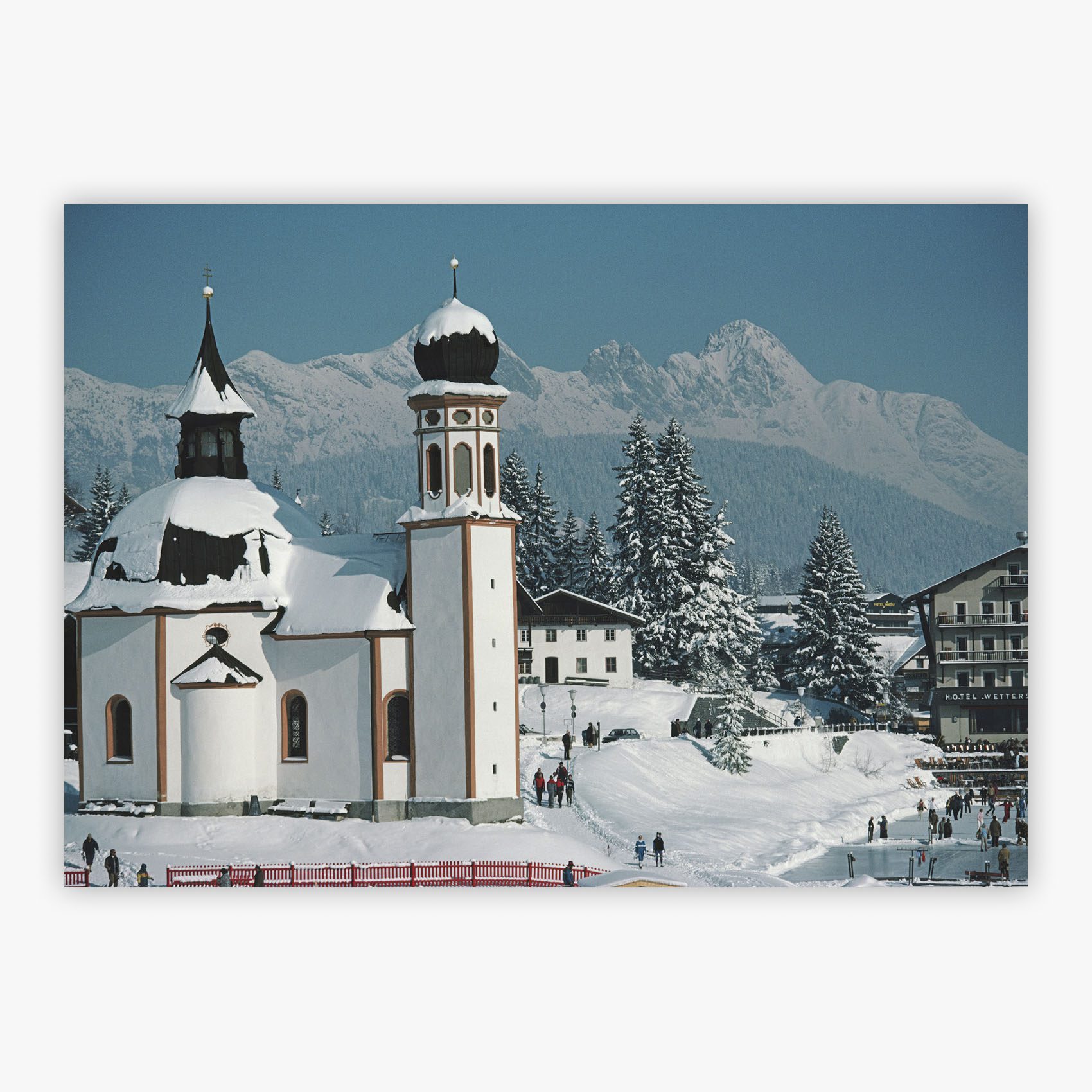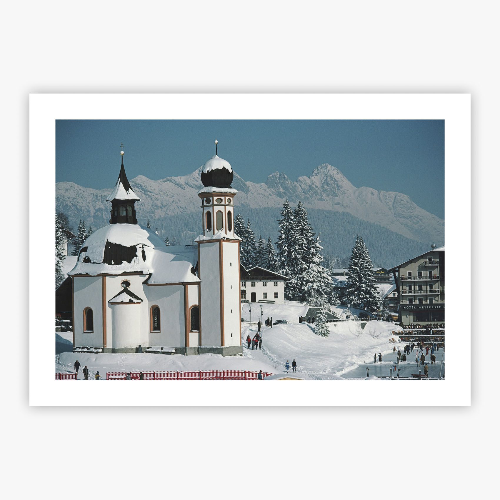 Seekirchl In Seefeld transports you to the Austrian winter of 1985, where Slim Aarons captured the iconic Seekirchl chapel enveloped in an atmosphere of tranquility and timeless beauty. The small chapel serves as the centerpiece of this evocative composition, surrounded by the serene landscapes of Seefeld. In this photograph, natural beauty merges with architectural elegance, creating a moment frozen in time that invites contemplation of a world where simplicity and sophistication coexist in perfect harmony.
