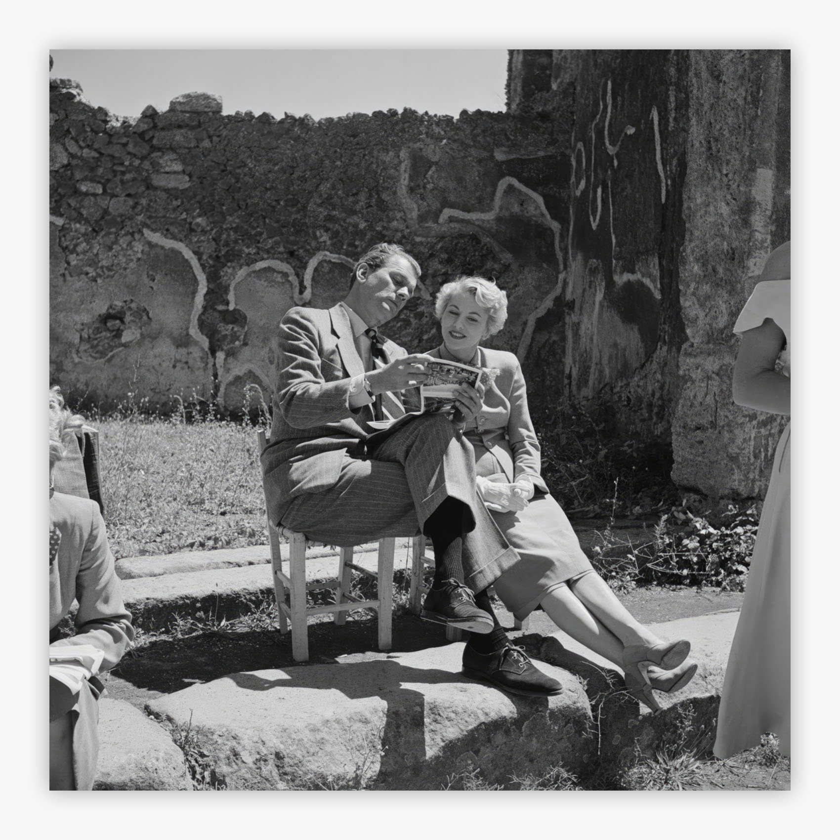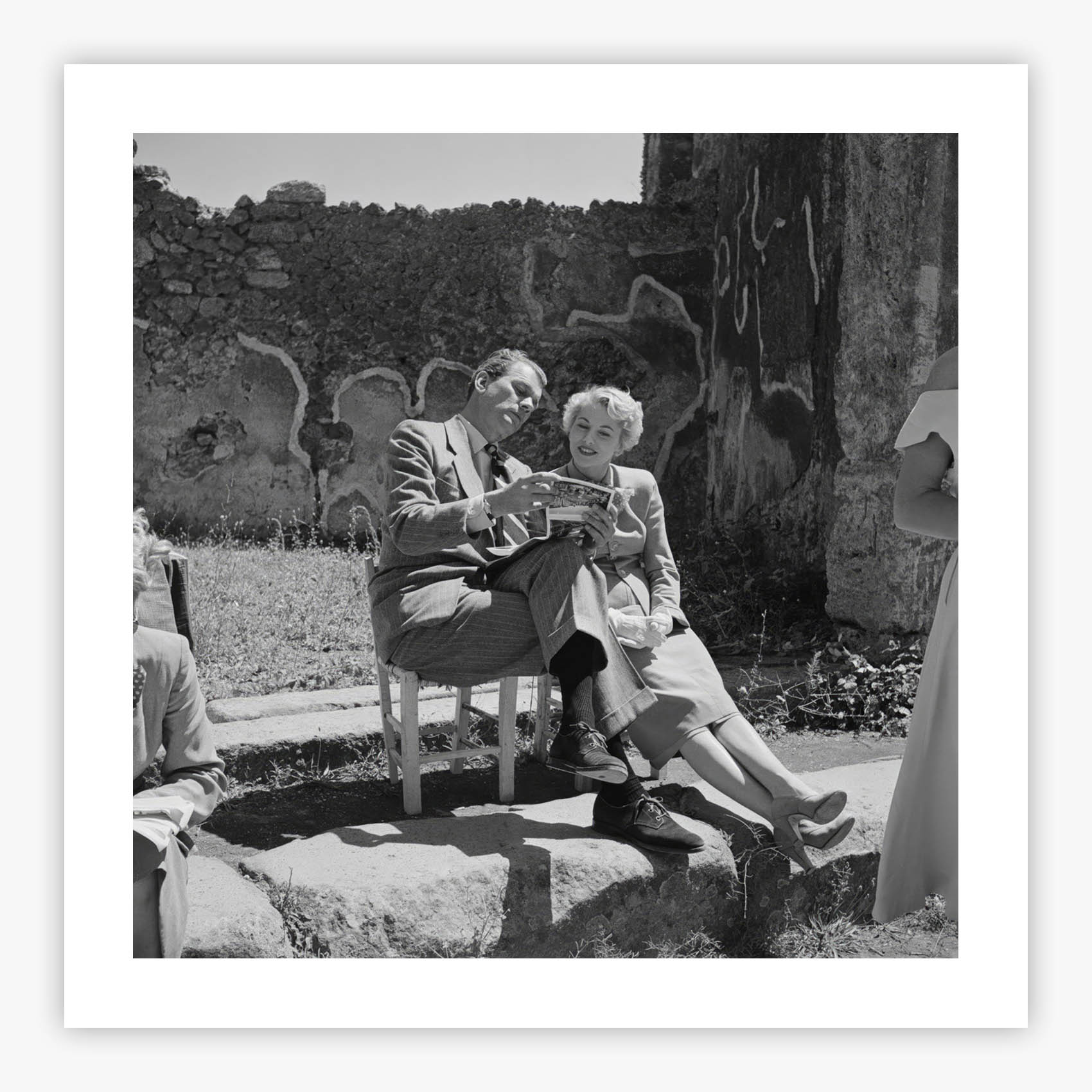 September Affair transports you to the ancient Roman city of Pompeii, where Slim Aarons captured a cinematic moment of pure Hollywood glamour. This remarkable photograph features 1940s icons Joseph Cotten and Joan Fontaine on location during the filming of the movie of the same name, their sophisticated presence set against weathered columns and timeless ruins. The image preserves that magical intersection where classic cinema met archaeological wonder, creating a scene that speaks to both romance and history.