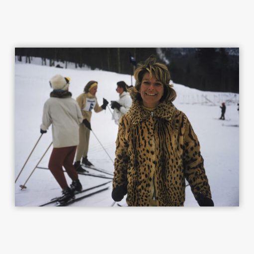 Skiing In Vermont captures American socialite and fashion writer Nan Kempner on the slopes of Sugarbush Mountain ski resort in April 1960, where Slim Aarons photographed the intersection of vintage glamour and winter sport. Each detail transports you to this moment of 1960s elegance, where refined leisure meets the pristine mountain landscape. This spellbinding image offers a delightful interplay of sophistication and the timeless allure of alpine style, serving as your window into an era when the slopes belonged to high society.