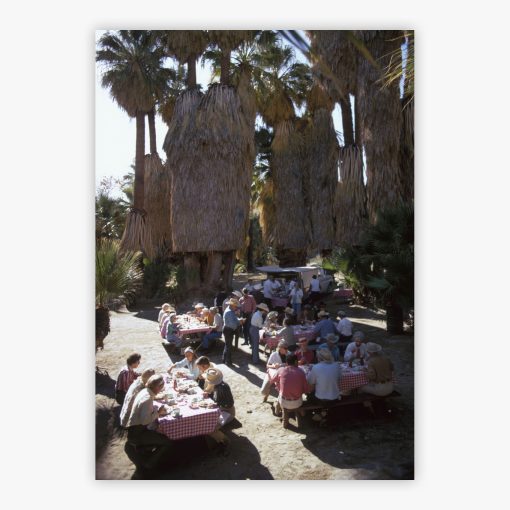 Indulge in the enchanting ambiance of ‘Lunch Al Fresco,’ a captivating Slim Aarons photograph. Transport yourself to the serene beauty of Andreas Canyon, Palm Springs, in January 1970, where a group of horse riders pause amidst majestic Washingtonia palms for a delightful meal. This photograph captures a fleeting moment, evoking the joyous chatter, heartfelt conversations, and soothing rustle of palm fronds that enveloped the scene.
