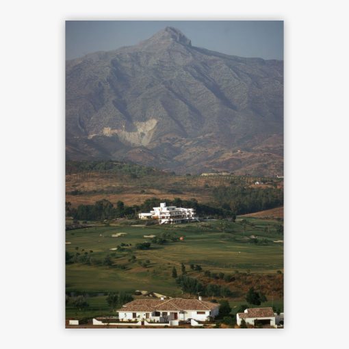 Spanish Countryside captures the sun-drenched tranquility of Spain's Costa del Sol as Slim Aarons discovered it in August 1977. Mountains rise majestically in the background, their presence commanding yet serene, while the warm Mediterranean light bathes the landscape in golden hues that speak to centuries of unhurried living. The composition draws your eye across rolling terrain where time seems to pause, inviting contemplation of a world where natural beauty and pastoral simplicity merge effortlessly, creating that quintessential Spanish atmosphere of timeless grace.
