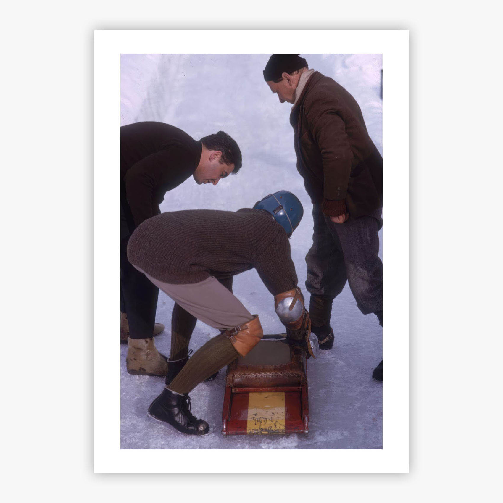 St Moritz Sledging captures three figures racing down snow-covered slopes in the Swiss Alps during March 1963, their laughter and exhilaration frozen in a moment of pure winter joy. Slim Aarons immortalized the carefree spirit of alpine leisure, where pristine white snow meets the elegance of mid-century resort life, creating a scene that radiates both adventure and sophistication. The crisp mountain air and downhill momentum transport you to an era when winter getaways embodied effortless style, bringing that same energy into your space.