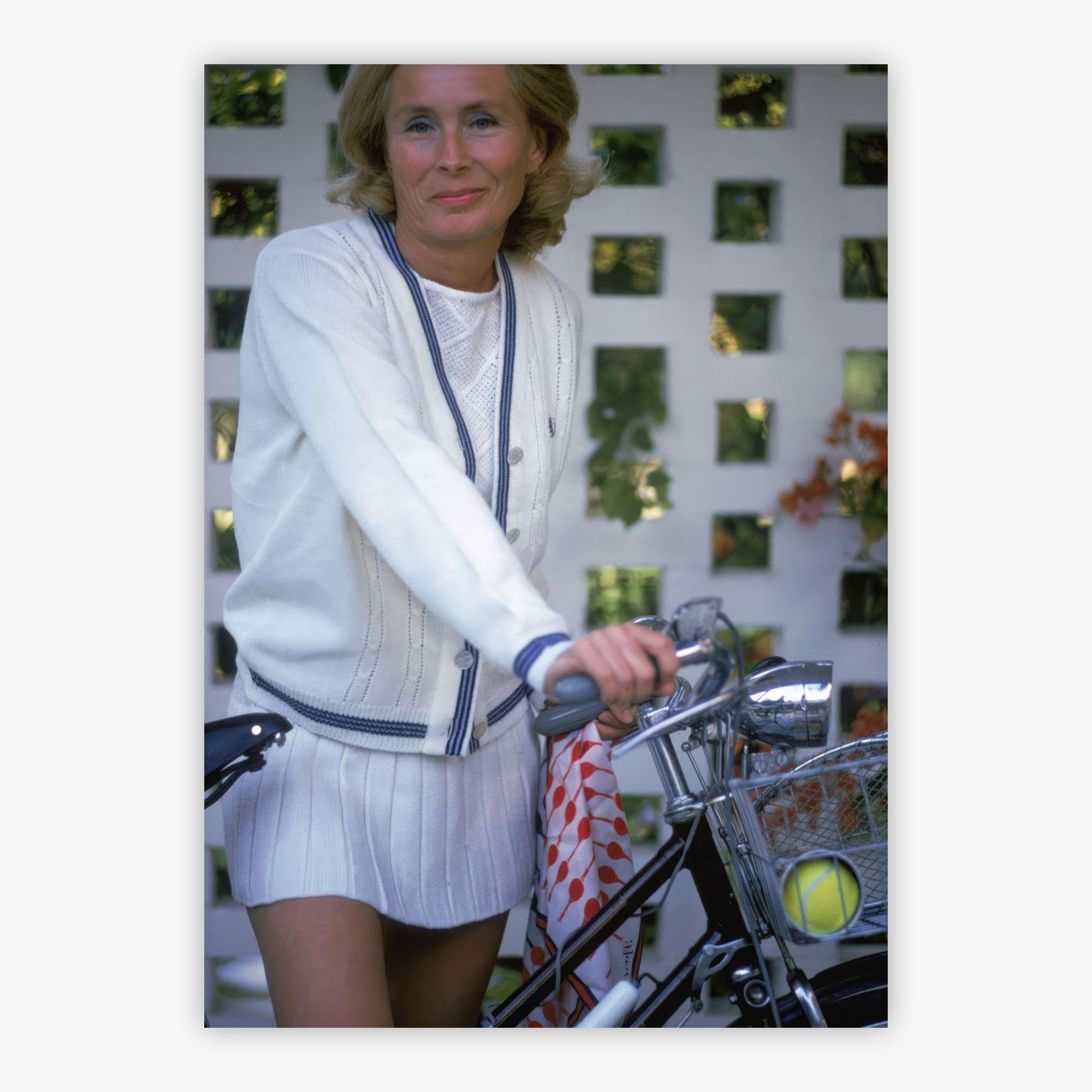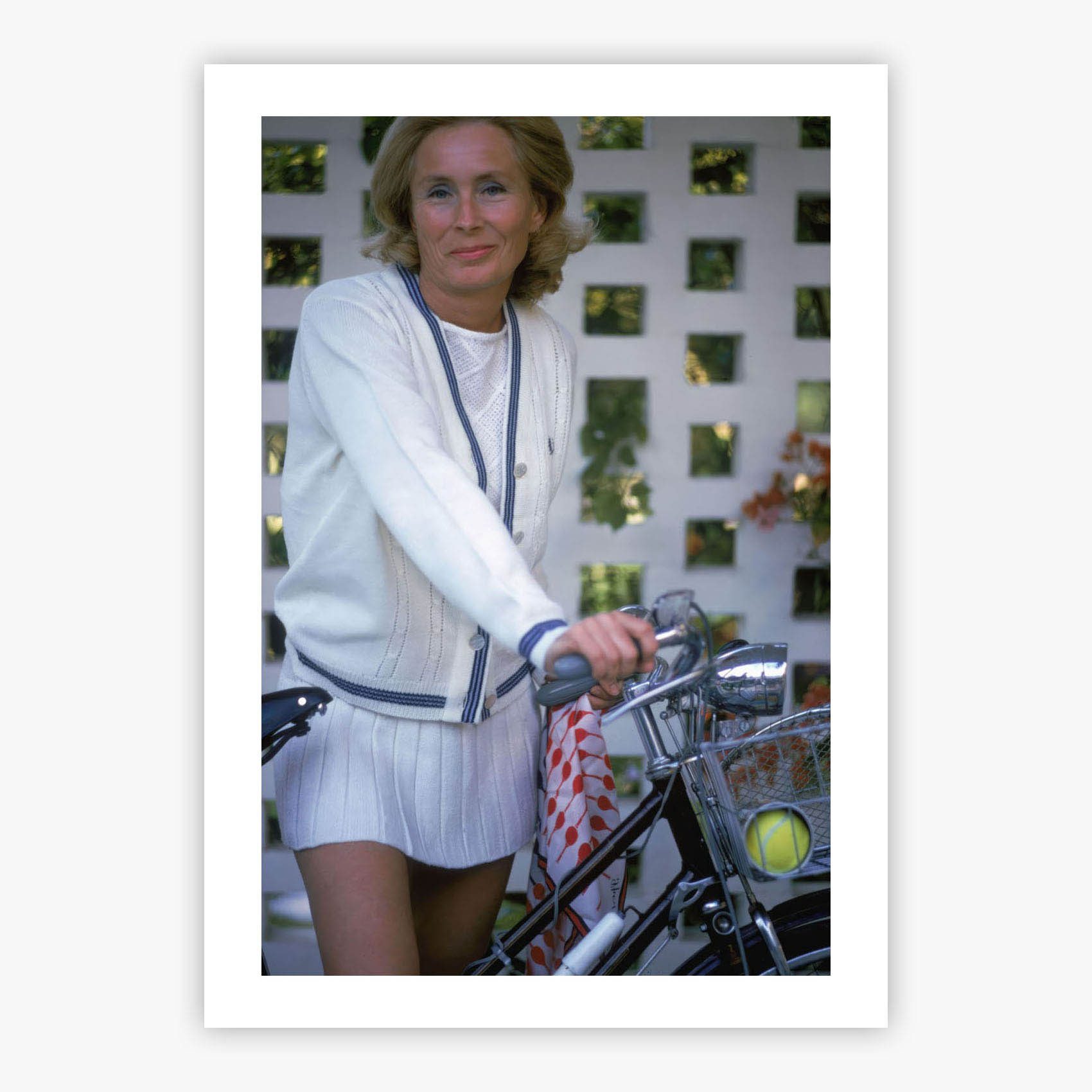 Tanya Rhinelander captures a moment of effortless grace in April 1974, as she cycles toward a tennis game in the sun-drenched paradise of Lyford Cay, New Providence Island. Slim Aarons documented this scene with his signature eye for the privileged life lived beautifully, preserving the carefree elegance of an era when leisure was an art form. Her relaxed journey through palm-lined paths embodies the sophisticated ease of island society, where every day unfolds with the promise of pleasure and the warmth of tropical abundance.