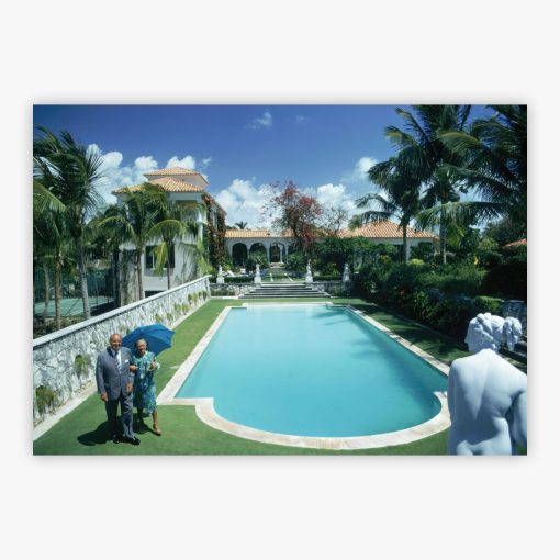 The Martonmeres At Home presents a captivating visual narrative by renowned photographer Slim Aarons, transporting you to 'El Mirador,' the idyllic Bahamian getaway of Lord and Lady Martonmere. John Roland Robinson, 1st Baron Martonmere, former Governor of the Bahamas, and his wife Maysie Gasque created this world of opulence and grace. This photograph draws your imagination into their realm of timeless elegance, where the privileged few lived with uncommon style.