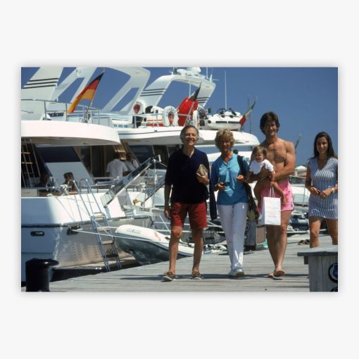 The Pasta King captures a snapshot of timeless Italian glamour, featuring Pietro Barilla, the mogul behind Italy's iconic pasta brand, on a visual holiday to the idyllic Porto Rotondo in Sardinia. Slim Aarons photographed Pietro alongside his wife Marilena, son Guido, daughter-in-law Federica, and granddaughter Greta, all basking in the quintessential dolce vita. The sun-drenched Mediterranean setting, with its warm tones and relaxed elegance, brings the very essence of Italian joie de vivre into your space, creating an immediate connection to la bella vita.