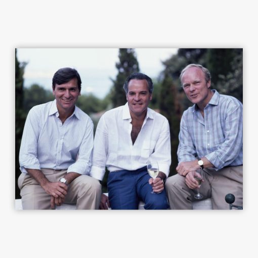 Tufo, Kravis And Beattie captures the essence of Italian dolce vita as Slim Aarons photographed the renowned figures Peter Tufo, Henry R. Kravis, and Dick Beattie lounging in the idyllic Porto Ercole in Tuscany during September 1986. This isn't merely a photograph but a time capsule preserving an era when glamour met casual elegance, where Mediterranean charm and leisurely sophistication converged in a single unforgettable frame. The composition distills grace and ease, transforming the finer moments of life into an exceptional visual narrative that transports you to sun-drenched Tuscan shores.
