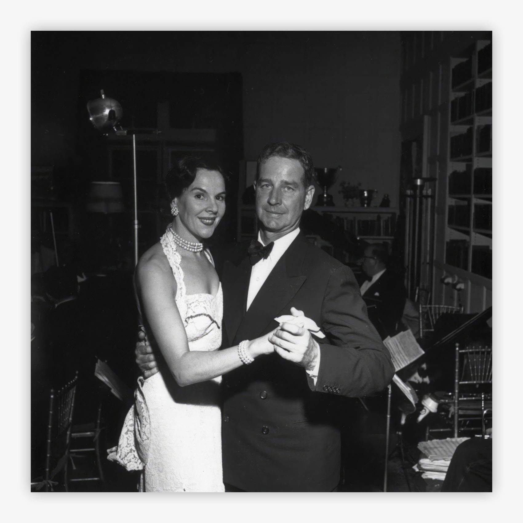 Vanderbilt Whitneys captures an unforgettable moment as Cornelius and Eleanor Vanderbilt Whitney twirl in perfect unison at Sarah Roosevelt's farewell soirée, held at the illustrious Manhasset estate 'Green Tree' on Long Island, New York in the 1950s. Slim Aarons froze this slice of high society with his unmistakable eye for social elegance and sophisticated detail, transporting viewers to an era where celebration was an art form and joie de vivre defined every gathering. The photograph radiates the effortless glamour of mid-century American aristocracy, where each dance step and elegant gesture told a story of privilege, grace, and timeless style.