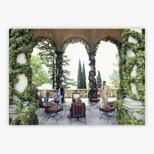 Villa del Balbianello captures a moment of timeless elegance, where the celebrated Italian mountain climber and explorer Guido Monzino plays host to a small gathering on his scenic terrace overlooking the iconic Lake Como. This awe-inspiring print transports you to the summer of 1983 at this legendary villa in Lenno, where Slim Aarons immortalized the sophisticated lifestyle that defined an era. The breathtaking backdrop of Italian gardens and shimmering water creates a visual narrative of leisure and opulence, inviting you into a world where exploration and refined taste coalesce in perfect harmony.