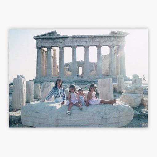 Vourekas-Petalas Family captures a moment where classical heritage meets contemporary grace, as Slim Aarons photographed the distinguished Greek architect Andreas Vourekas-Petalas standing beside the Parthenon on the Acropolis in June 1978. Accompanied by his wife Alexandra and their daughters Isabella, Tatiana, and Atalanda, this composition embodies the intersection of familial bonds and architectural grandeur. The ancient marble columns frame the family in an effortlessly elegant tableau, where personal narrative and historical significance converge against one of civilization's most revered landmarks.